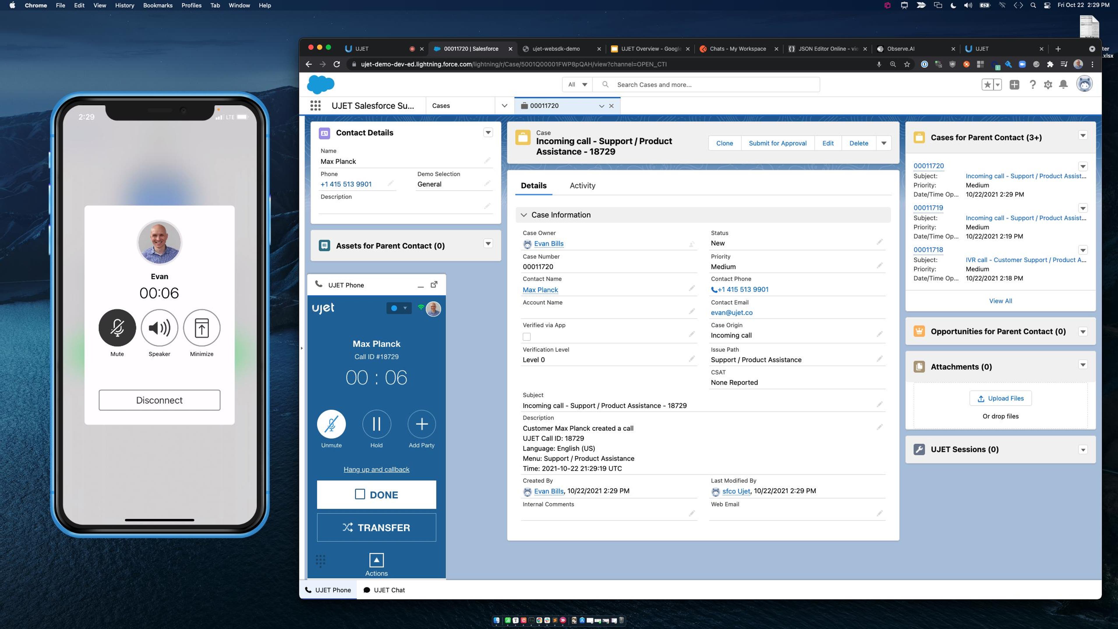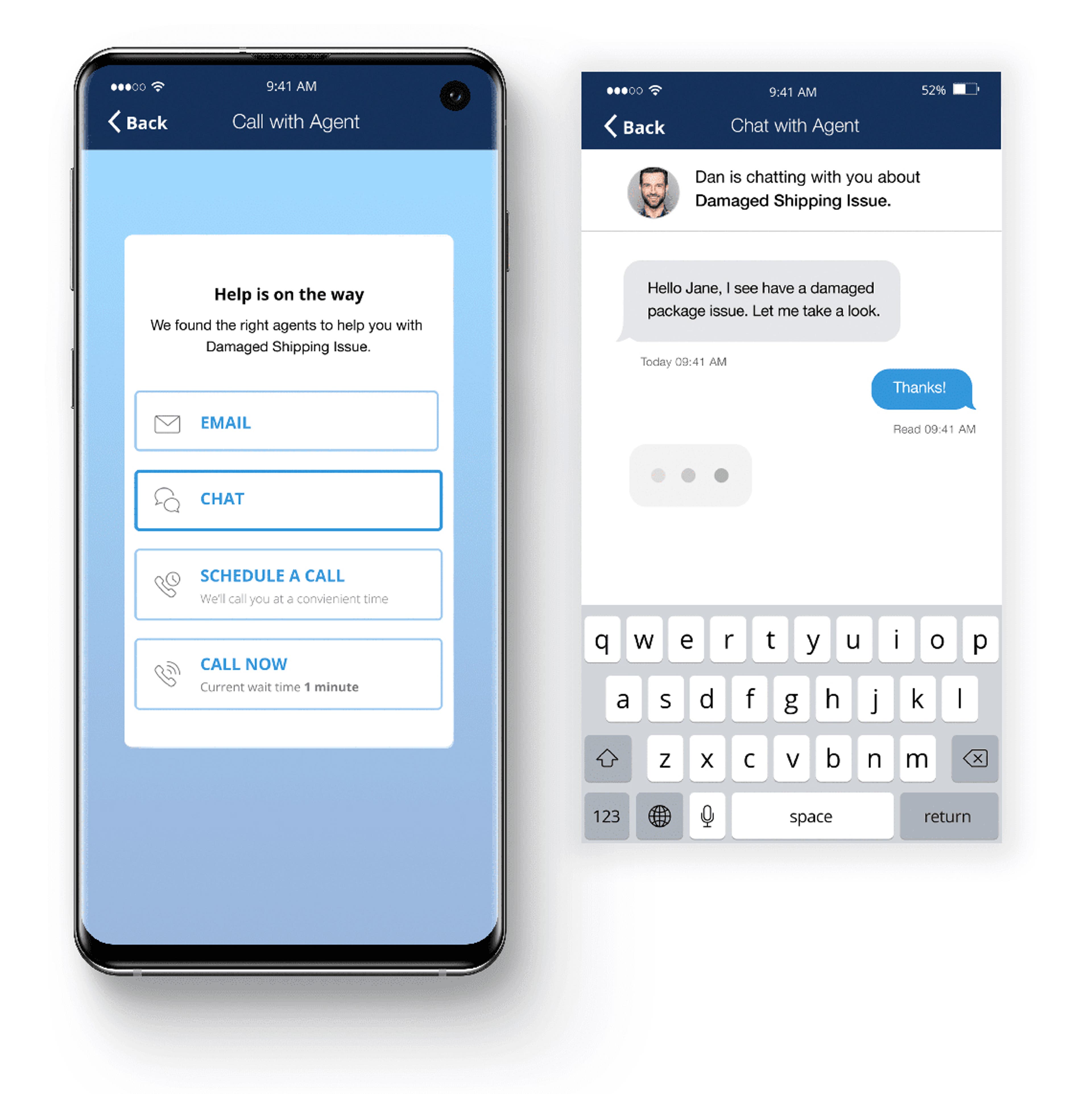 UJET’s mobile SDKs enable you to embed live chat and SMS into your app, and also allow agents to authenticate callers using fingerprint or Face ID, send and receive photos and videos without disconnecting a call, accept secure payments, and quickly identify a user’s last action taken in your app or website to quickly identify problems and find solutions.