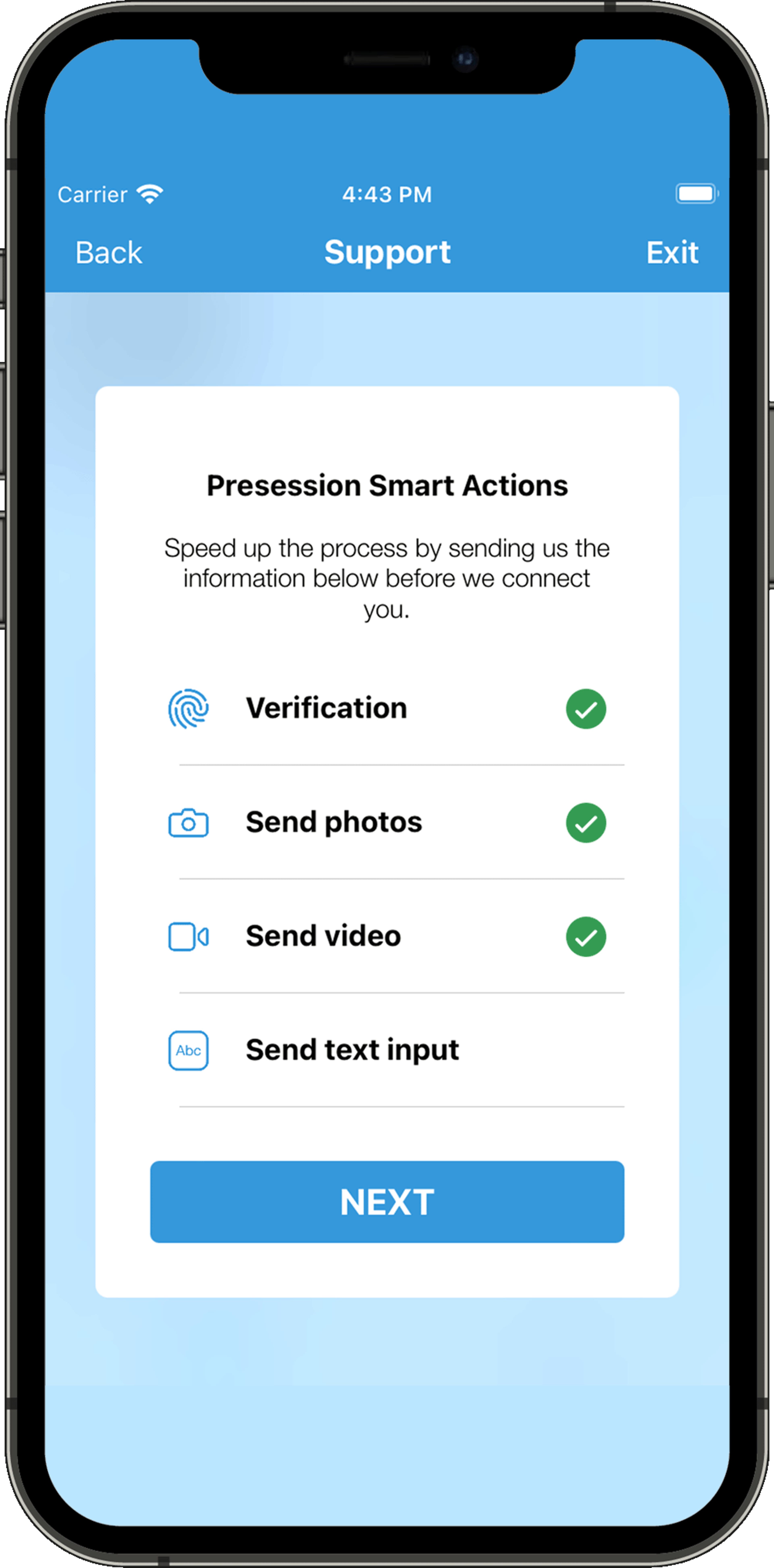 Easily validate your customers' identities with the biometric data they use to secure their mobile devices. From fingerprints to face detection, UJET's identity verification SDK provides fast and secure validation. You'll never have to ask a customer what their mother's maiden name is again.